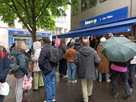 Rapidement réuni, le comité de surveillance a appelé au débrayage du personnel samedi 11 avril à partir de 14h00 et à un rassemblement de soutien devant le magasin. Gros succès, habitant-e-s et client-e-s étaient au rendez-vous, syndicats et politiques aussi.