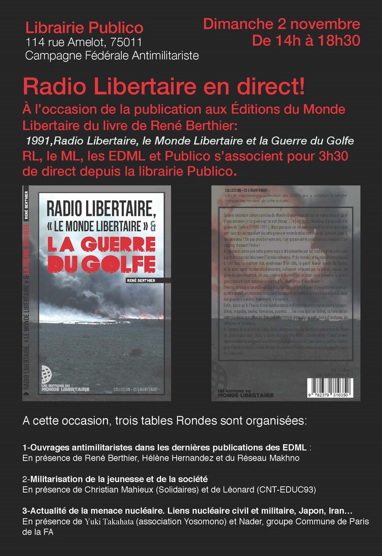 Dimanche 2 novembre sur Radio libertaire ou à Publico