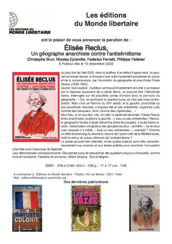 Éditions du Monde Libertaire - nouveautés de janvier 2022