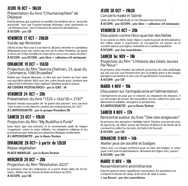 Actus anarchistes > Besançon, les rendez-vous d’automne (du 16 octobre au 11 novembre)