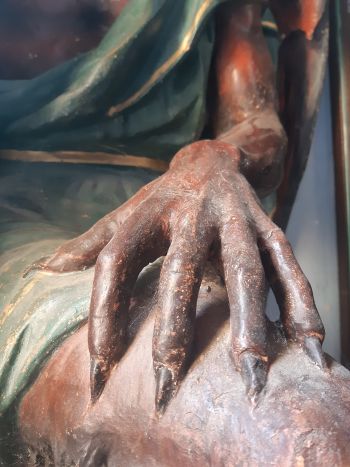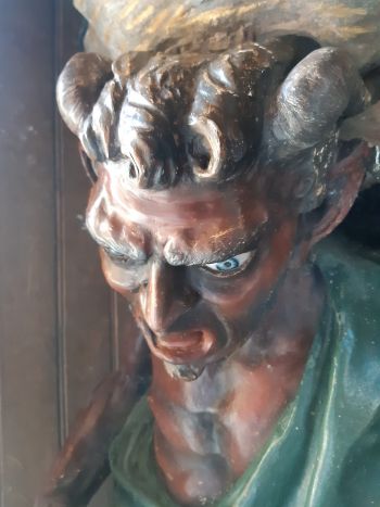 L’Église catholique a assimilé ce totem au diable, dans le but d’éloigner le peuple du culte païen. Il aurait, à entendre les mystificateurs, sur la tête une paire de cornes de cerf et serait entouré de bêtes à cornes.