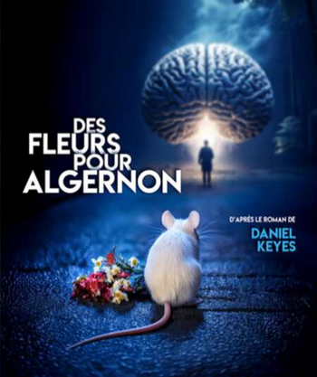 L’histoire est douloureuse, c’est celle d’un homme, Charlie Gordon qui au sens figuré ou au sens propre se tape la tête contre les murs. Il est né simple d’esprit et il a conscience de ses limites. L’auteur de ce personnage, Daniel Keyes a pris pour modèle un élève de sa classe d’anglais. Cet homme-là rêve tant de devenir intelligent qu’il accepte d’être le cobaye de savants qui vont l’opérer pour faire de lui « un génie ». Devenu trop intelligent, il suscitera la jalousie de ses collègues de travail et sera confronté à la solitude. Puis de façon irréversible, avant de perdre finalement ses facultés, car le succès de l’opération était éphémère, il assistera au déclin et à la mort d’Algernon, la souris blanche, un autre cobaye.