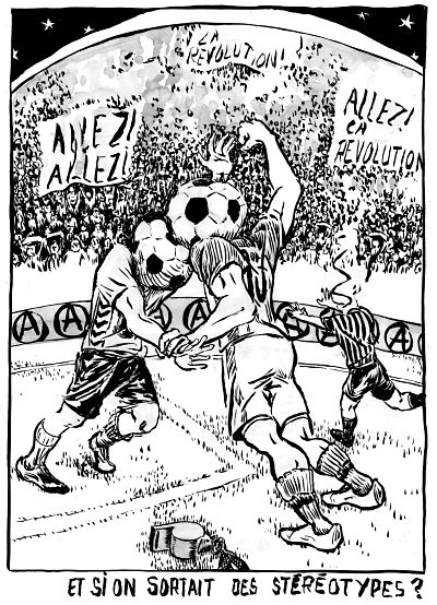 Le football n’est pas seulement la manifestation la plus éclatante de la société capitaliste où tout (et tous) se vend et s’achète, c’est l’un des instruments le plus efficaces de diffusion de l’idéologie dominante, qui associe réussite et enrichissement individualiste. Il est aussi récupéré par l’État pour faire croire qu’il y a encore un ascenseur social et désamorcer les tensions sociales. Donc, avec son slogan “S’en sortir par le foot”, l’État est de fait un allié du capitalisme. Les joueurs professionnels sont très et trop bien payés mais le joueur exceptionnel issu d’une banlieue à fort taux de chômage est justement une exception mais il sert d’alibi au gouvernement. Cela dit, le foot a beau être une arme de distraction massive des exploité.e.s, l’amour populaire du football n’est en rien incompatible avec une conscience politique et l’engagement des supporters, au contraire, des actions militantes sont menées sur la vague de de sa popularité et un football alternatif se développe.
